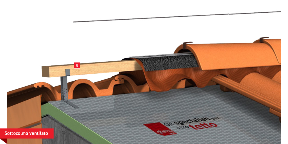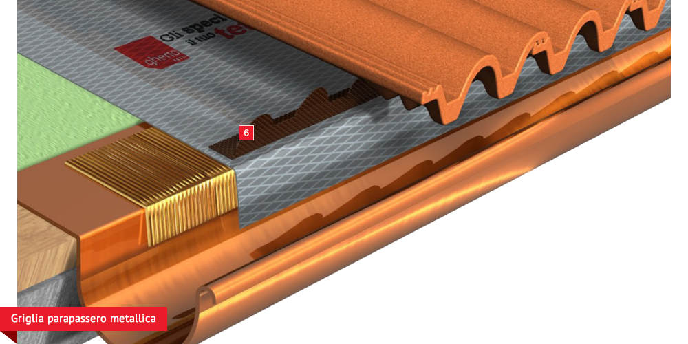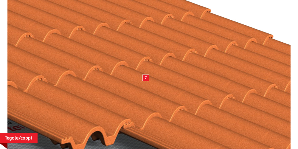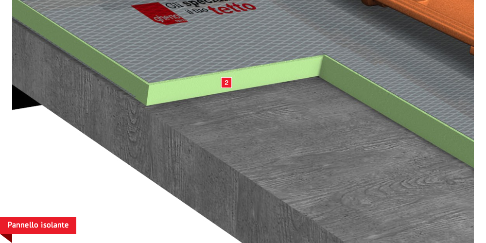 con pannelli ad alta densità e traspirabilità per migliorare il confort abitativo sia d’estate che d’inverno; permette agli ambienti sottostanti di abbassare la temperatura interna d’estate e di mantenere più a lungo il calore d’inverno. Manto di copertura formato da tegole o coppi