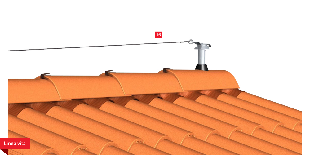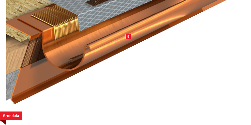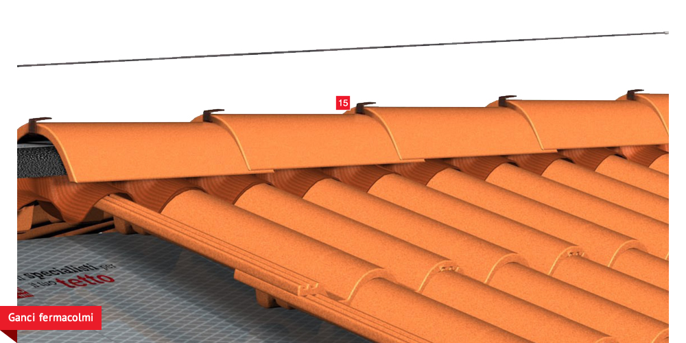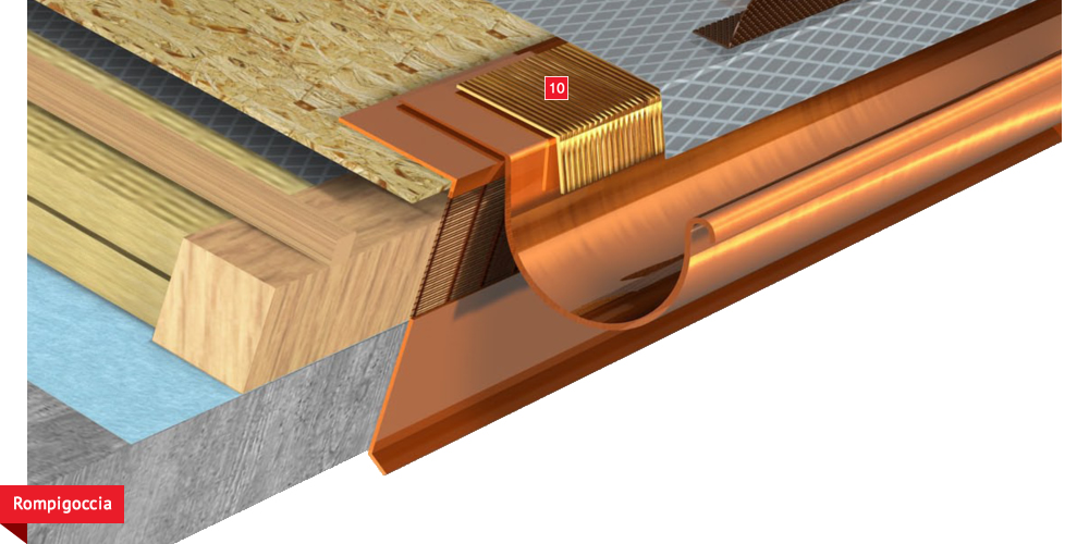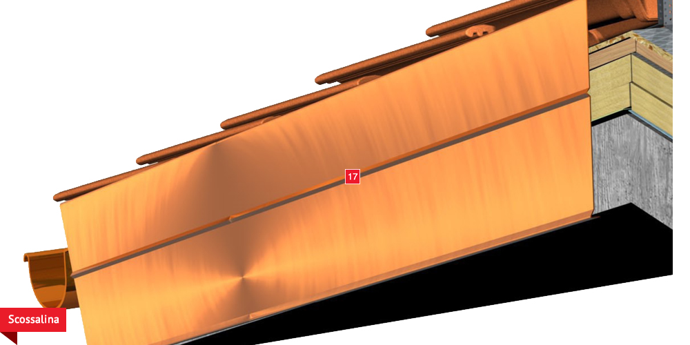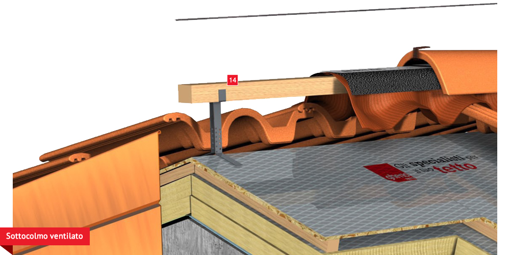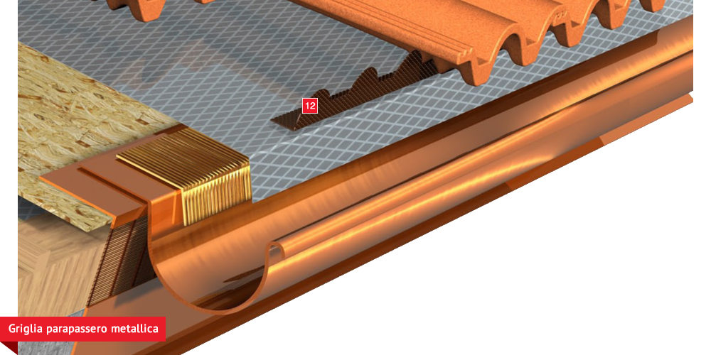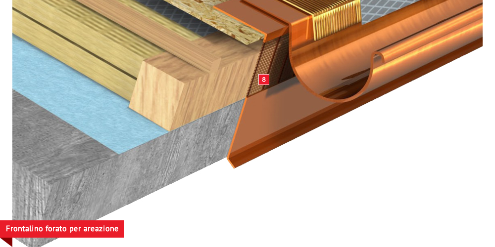 sottogrondaia per il passaggio dell’aria all’interno della camera di ventilazione. Manto di copertura formato da tegole o coppi