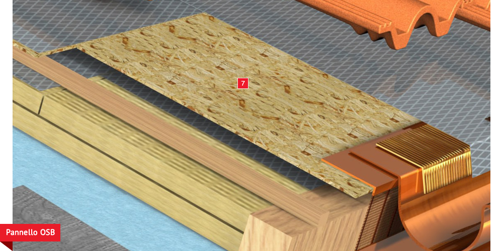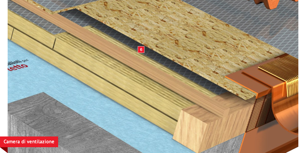 di ventilazione, che consente lo smaltimento del calore della copertura, piano di posa in lastra di legno fenolico OSB
